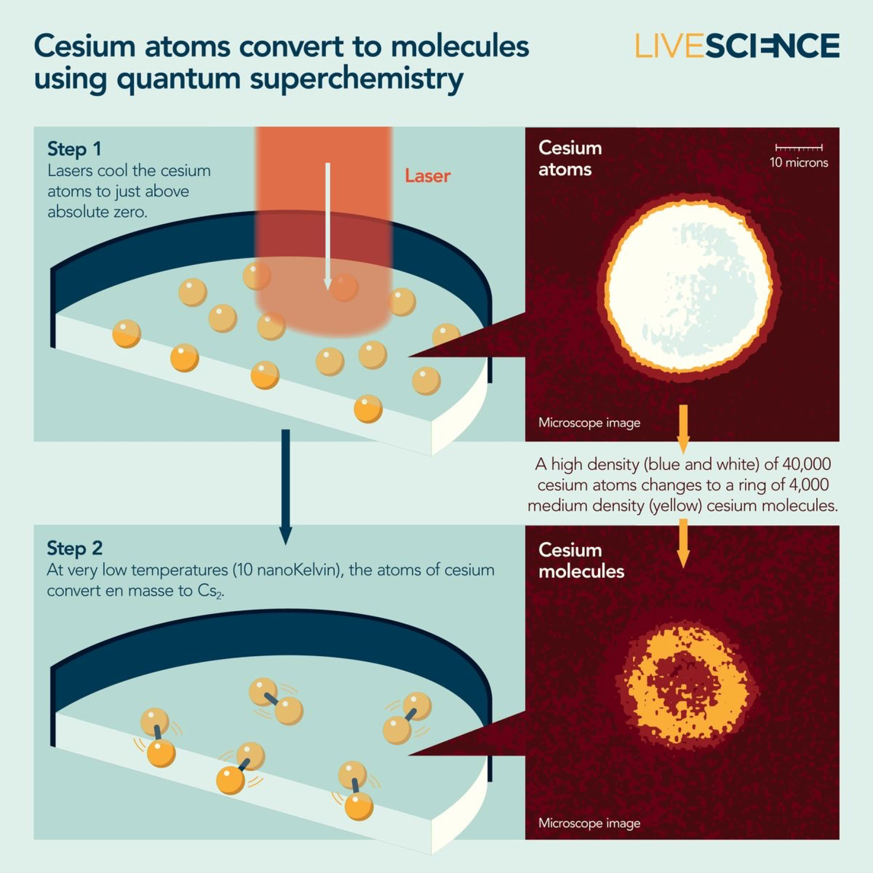 Chin was a doctoral student studying cesium atoms at cold temperatures when Heinzen and Drummond's superchemistry paper came out. "My research was totally derailed because of this new research," Chin told Live Science. He set out on what would become a 20-year quest to achieve quantum superchemistry in the lab.